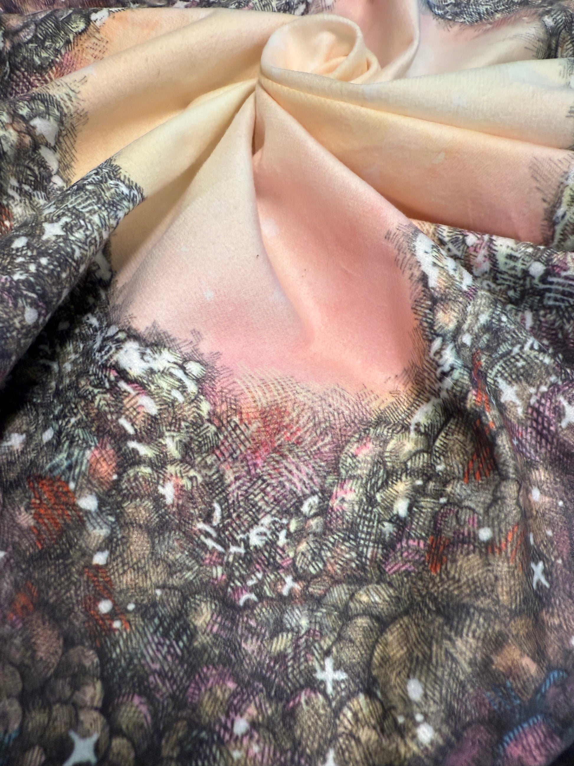 Printed on a velvet-textured, 18 x 18 inch cloth featuring my watercolor illustration.